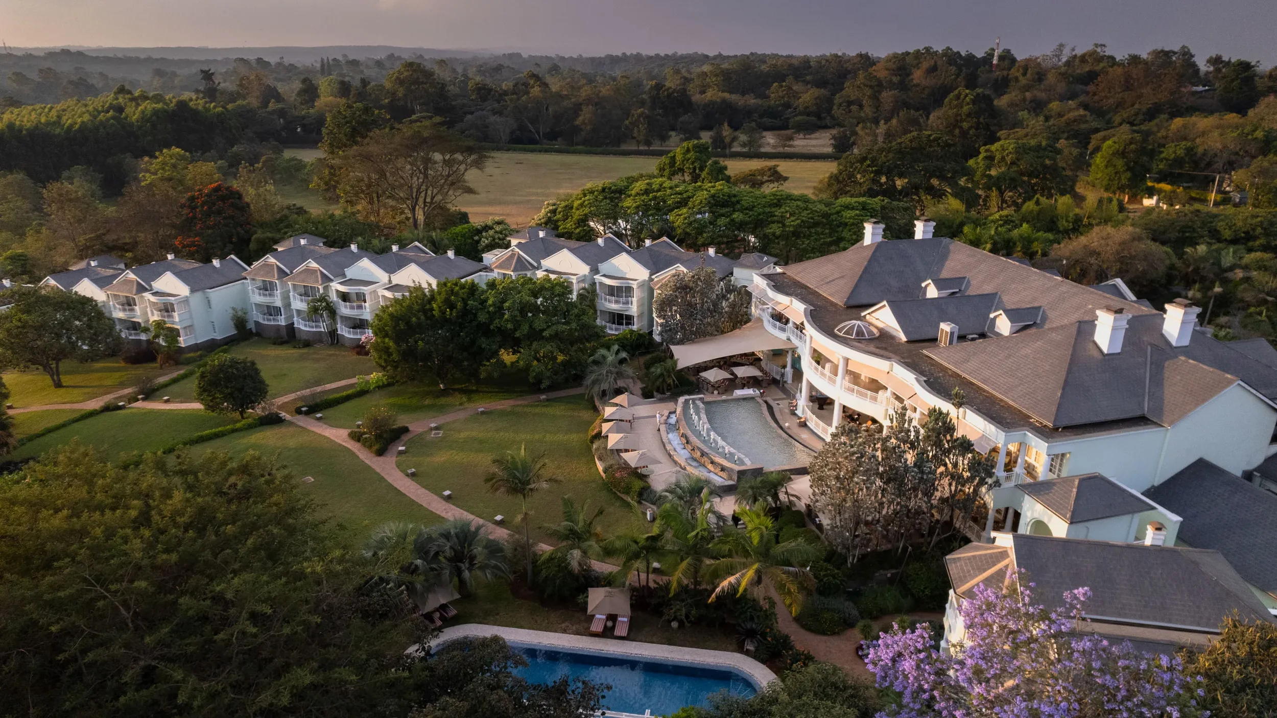 From here, you continue to the legendary Giraffe Manor, one of Africa's most distinctive properties. The resident herd of Rothschild giraffes visits morning and evening, and afternoon tea with heads appearing at the upstairs windows is exactly as extraordinary as it sounds.