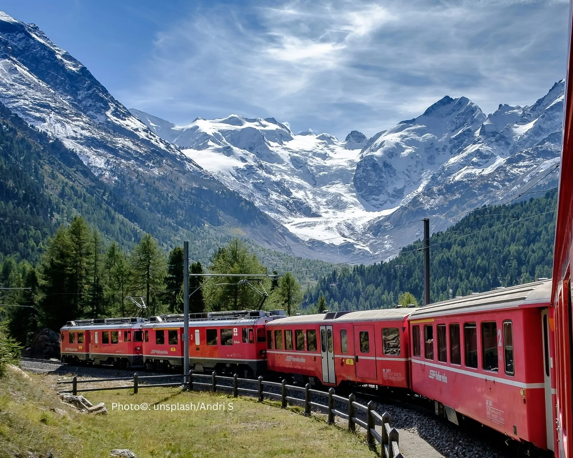 Switzerland via the Bernina Express, one of the most scenic rail journeys in Europe and a spectacular way to transition between destinations